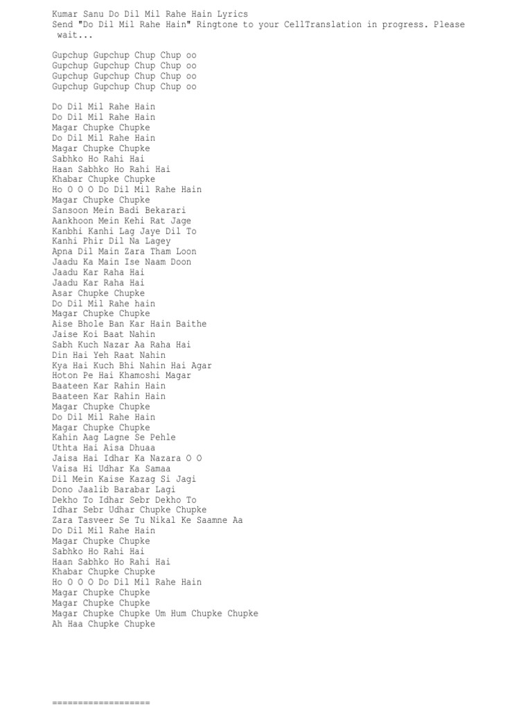 Do Dil Mil Rahe Hai Lyrics In Hindi Pardes Do Dil Mil Rahe Hai