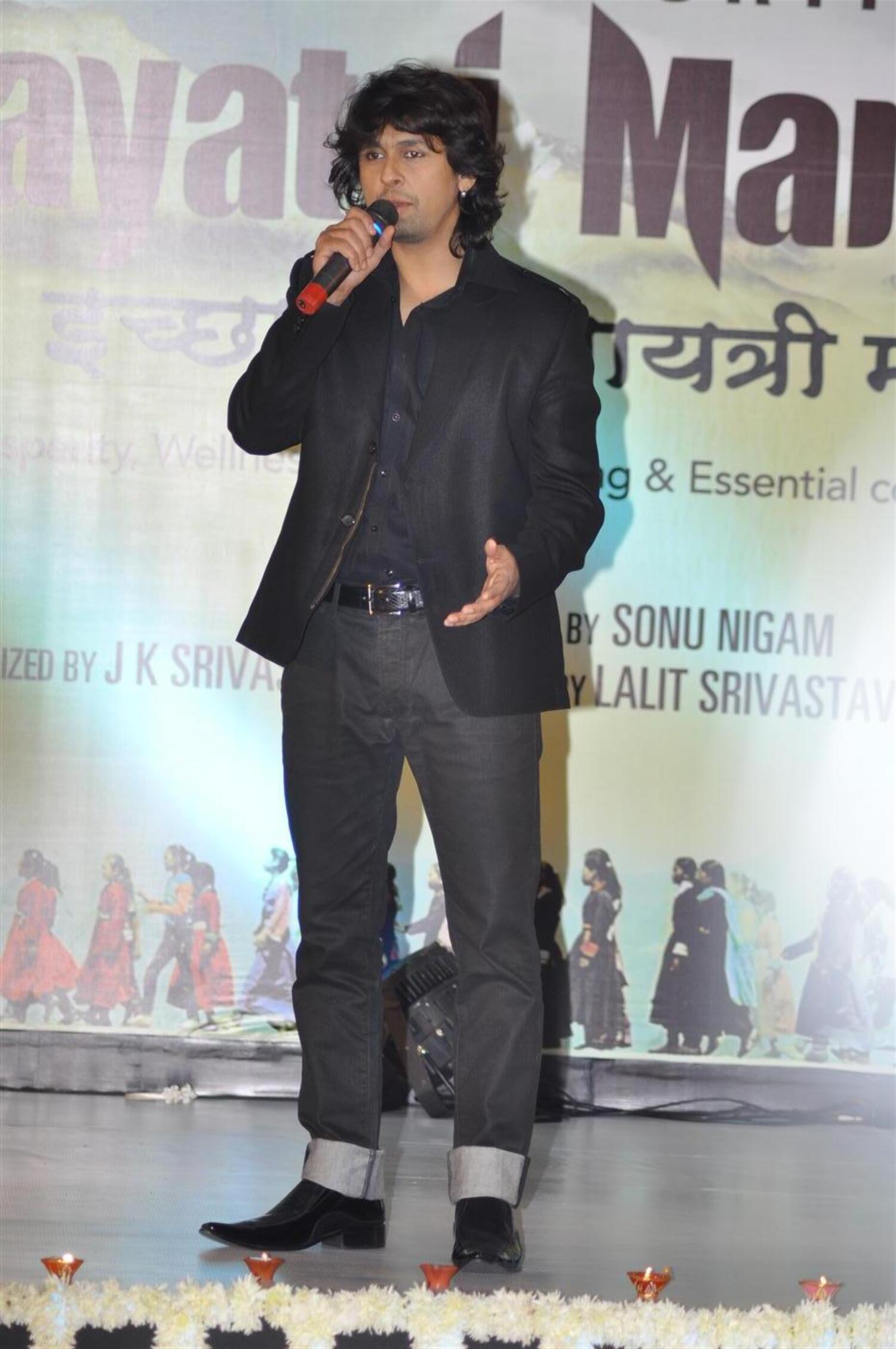 Singer Sonu Nigam Singing On Stage At Launch Of His Gayatri Mantra Album At Hotel Intercontinental In Mumbai 3 Rediff Bollywood Photos On Rediff Pages
