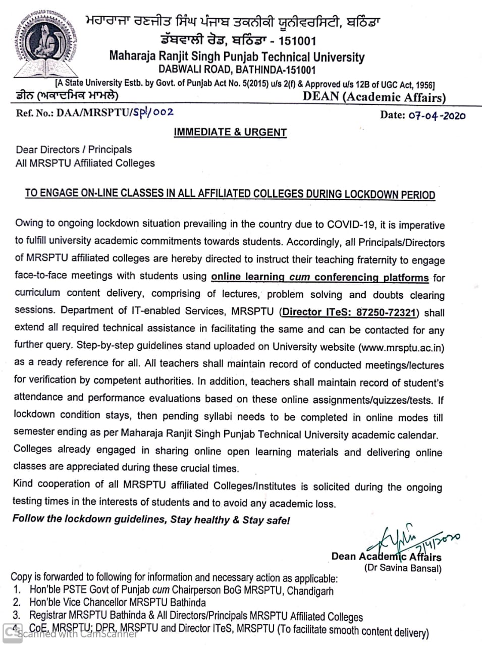 Maharaja Ranjit Singh Punjab Technical University Bathinda Faculty Details 2020 2021