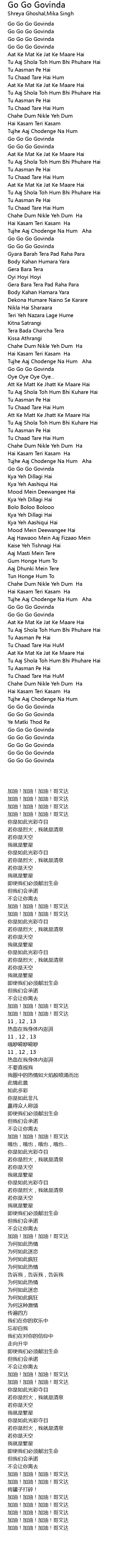 Go Go Go Govinda Lyrics And Music By Shreya Ghosal Mika www.smule.com