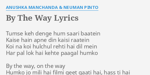 By The Way Lyrics By A Hka Manchanda Neuman Pinto Tumse Keh www.flashlyrics.com