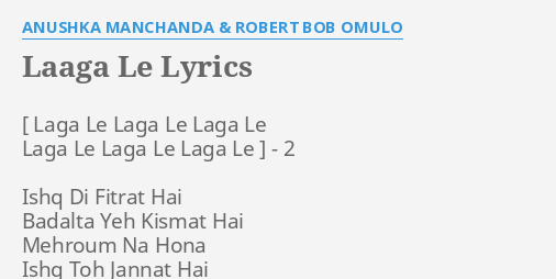 Laaga Le Lyrics By A Hka Manchanda Robert Bob Omulo 2 Ishq www.flashlyrics.com